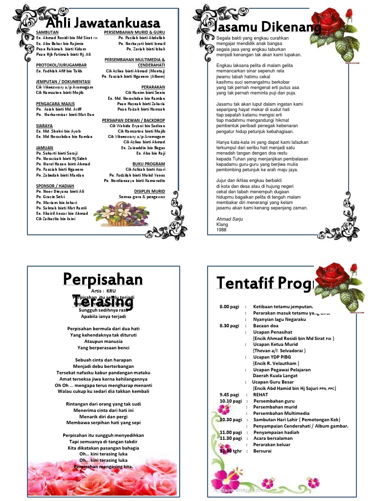 BUKU PROGRAM MAJLIS MGB. Contoh Surat Jemputan Ke Majlis Perpisahan Guru It also will include a picture of a kind that could be seen in the gallery of Contoh Surat Jemputan Ke Majlis Perpisahan Guru. Hingga kenal hati dan budi En Hamdan Bin Nordin Sebak dan sayu ditinggal pergi Namun jangan ditangis perpisahan ini Pengerusi Kerana kami di sini tak pernah melupai Setiap detik yang pernah kita lalui En Mohd Zakaria B Abdul Aziz.