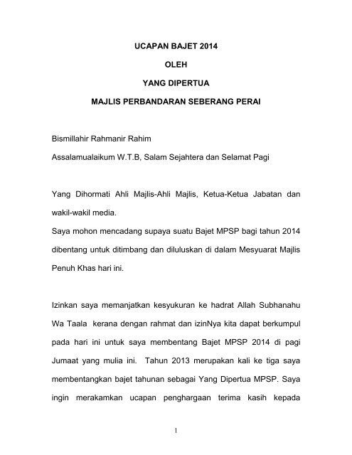Ucapan Bajet 2014 27 September 2013 Majlis Perbandaran