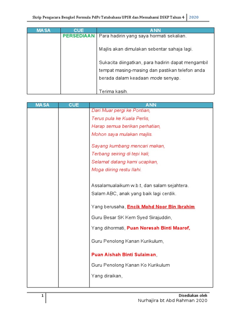SKRIP MAJLIS PERASMIAN KETRAMPILAN BAHASAdoc. 230 PETANG PENGUMUMAN Bagi memastikan majlis berjalan dengan lancar mohon Kerjasama murid-murid untuk memastikan microphone sentiasa berada di dalam keadaan. TEKS UCAPAN ALU-ALUAN.