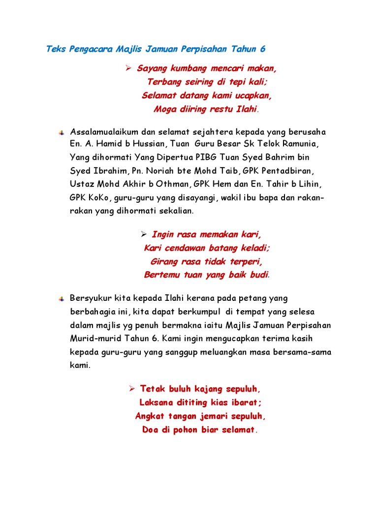 Teks Pengacara Majlis Jamuan An Tahun 6 Pdf