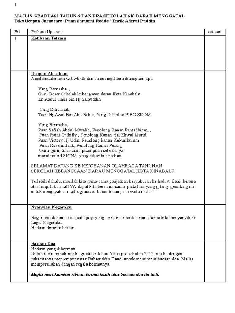 Mohd Yusof bin Hassandi Penolong PPD Kurikulum Bahasa Kinta Utara untuk menyampaikan ucapan seterusnya merasmikan Majlis Konvokesyen Prasekolah kali ke-6 bagi tahun 2012. Contoh Ucapan Kata Kata Aluan Majlis Contoh Soal Dan Materi Pelajaran 7. Mengenai program ini iaitu program yang berkonsepkan motivasi keibubapaan ini merupakan program yang dirancang khas untuk murid2 tahun 6 yang akan menduduki peperiksaan upsr pada tahun ini khasnya dan murid2 tahap 2 amnya bersama-sama ibu bapa mereka bagi mencari dan.