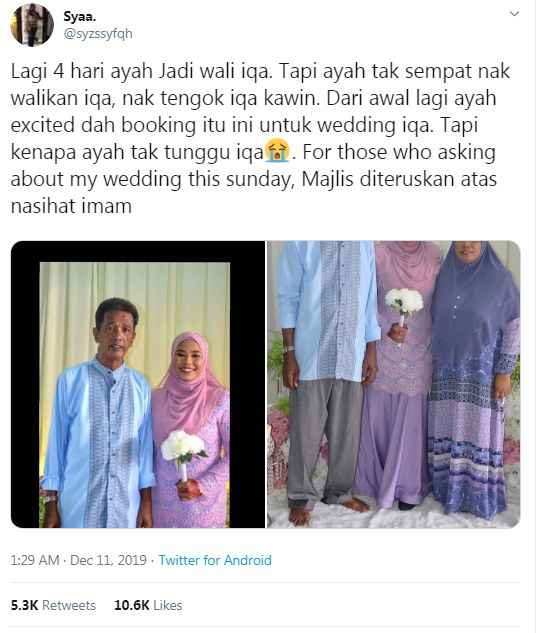 Nak Segera Siapkan Urusan Kahwin Anak Satu Petanda Ayah Pergi 4 Hari Sebelum Jadi Wali Nikah Masih Ada Lagi Bau Ayah Pada Jam Tangannya Viral Mstar