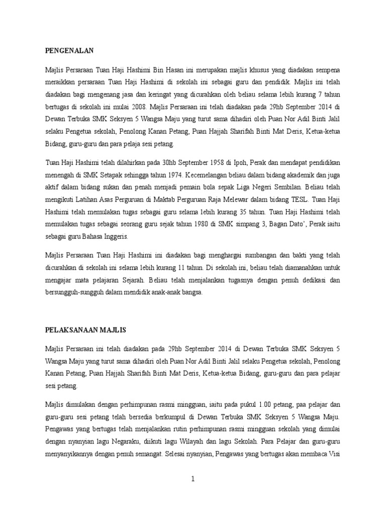 Hal itu karena bagi mayoritas orang perpisahan menjadi hal mengharukan dan menyedihkan. Tidak mudah untuk mencari kata-kata yang tepat untuk diluahkan pada hari terakhir anda sama ada di kuliah di tempat kerja atau di majlis lain. SKRIP JURU ACARA MAJLIS PROGRAM MASIH ADA YANG SAYANG SEMPENA DASAR WARGA EMAS NEGARA DWEN KALI KE-3 SEKOLAH MENENGAH KEBANGSAAN LA SALLE SENTUL UCAPAN PEMBUKAAN KATA-KATA ALUAN Juru acara majlis 1 Assalamualaikum warrahmatullahwibarakatuh dan salam sejahtera kepada guru-guru AJK Dasar Warga Emas Negara.
