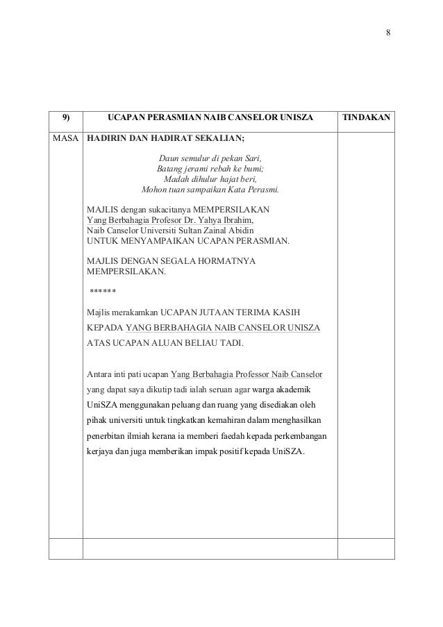 Anda telah mengetahui bahawa kandungan teks ucapan terdiri. Pada hari ini Ieqa akan kongsikan contoh skrip atau teks pengacara majlis yang Ieqa pernah sediakan sebelum ini. 1005 pm Tunggu semua VIP keluar Kinisaya serahkan majlis kepada pengacara majlis yang berikutnya.