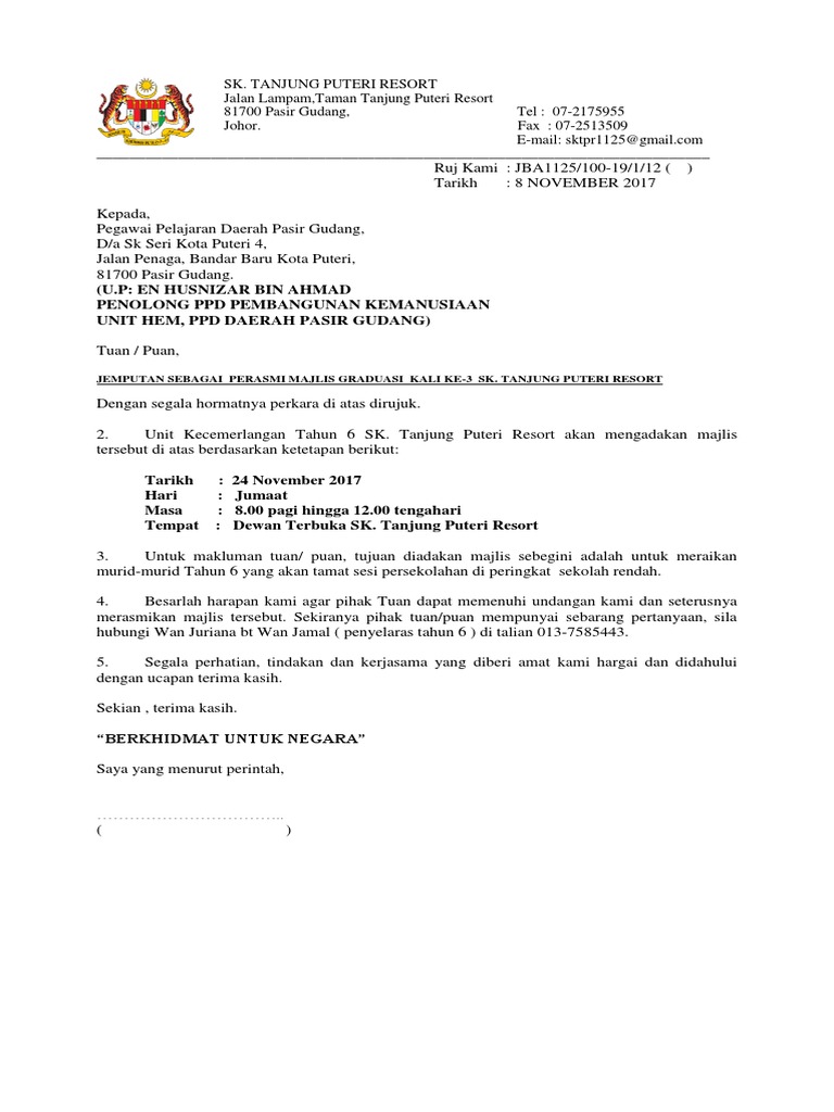 Tuan Puan JEMPUTAN KE MAJLIS PERASMIANPENUTUP KURSUS KREDIBILITI PERINGKAT SEKOLAH Dengan sukacitanya perkara di atas dirujuk. Format gambar contoh surat jemputan majlis jamuan yang baik dan benar 2019. Sekolah Rendah Islam Abim Sungai Ramal Surat Jemputan Ke Majlis Anugerah Pelajar Cemerlang Sempena Mesyuarat Agung Baka 2017.