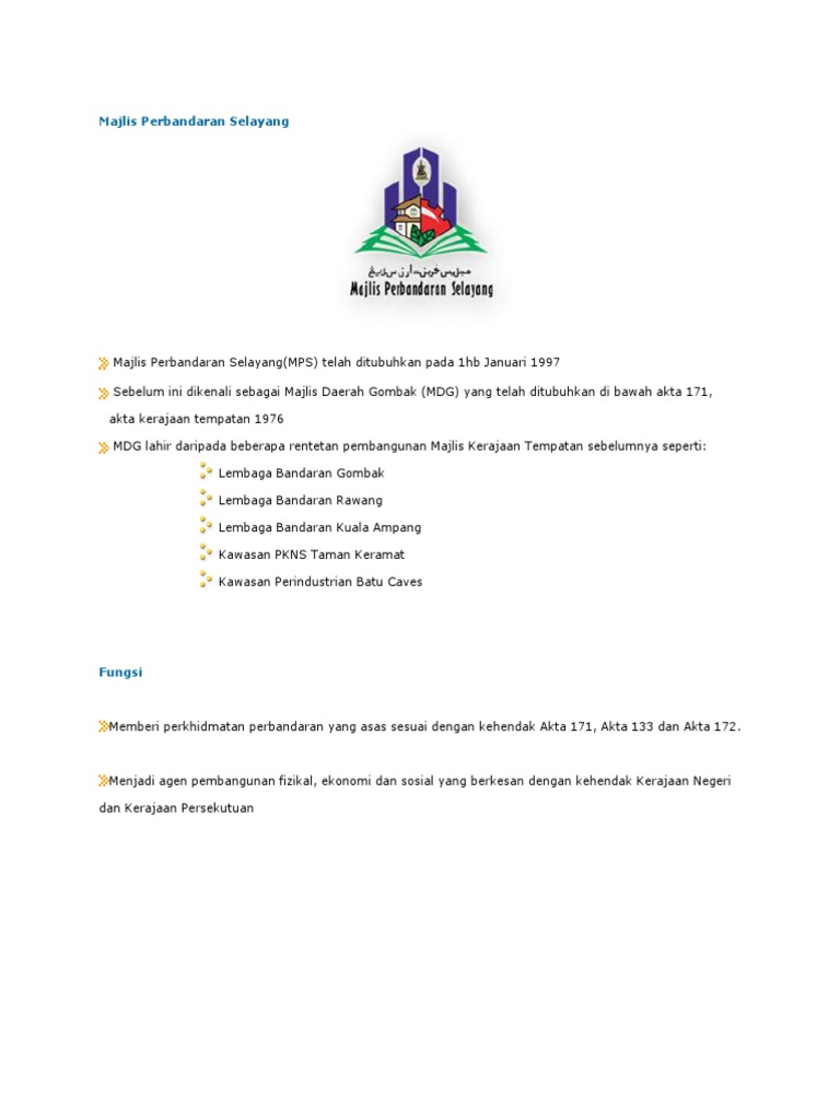 Majlis Perbandaran Selayang Batu Caves town. 12 Punca kuasa untuk mengenakan Cukai Taksiran adalah dibawah Seksyen 127 Akta Kerajaan Tempatan 1976 Akta 171. Check spelling or type a new query.