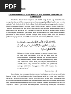 Tugasan 1 Laporan Perkahwinan Dan Pembubaran Perkahwinan Plaintif Rmy Dan Defendan Ksm