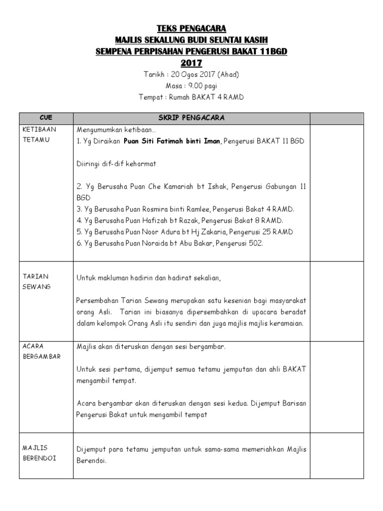 Teks Pengacara Majlis Perpisahan Pengerusi Bakat 11 Bgd